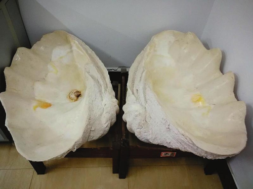砗磲是目前海洋中最大的双壳类贝壳,它的碳酸盐壳体具有清晰的年纹层,是一种理想的高分辨率古气候研究载体。在地球环境研究所流传着这样的“故事”:如果哪位参观者能一个人将1.2米的大砗磲从5楼实验室搬到1楼,这个大砗磲宝贝就送给他。至今,没有人能挪动它,因为这个大宝贝重达300斤,需要2—3个成年男子才能抬得动。
