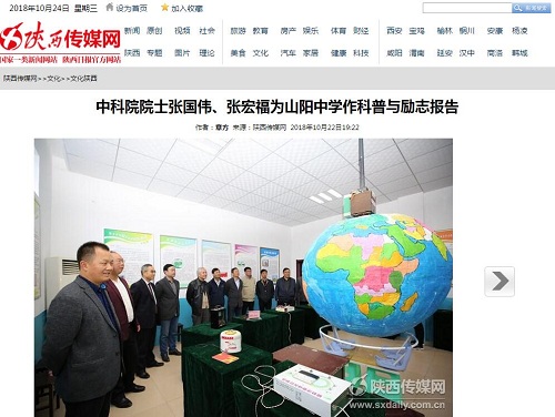 10月19日,中国科学院、中央宣传部、教育部、科技部、中国工程院、中国科学技术协会主办,中国科学院西安分院和陕西省山阳中学承办的“院士与中国——院士报告进校园”活动在秦岭深处的山阳中学举行,中国科学院院士、西北大学张国伟、张宏福教授为该校2600多名同学、教师及校友代表带来一场地球科学知识与学习、研究、奉献体会的报告盛宴,通过传播科学知识,用科技的力量和科学家的魅力,激励和影响中学师生。