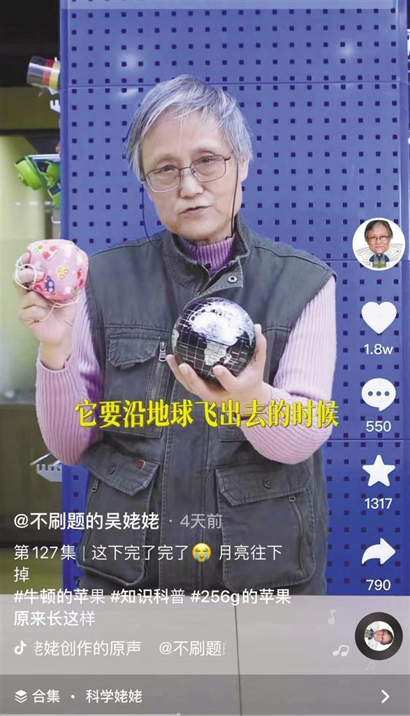 “FAST就像一口大锅,大到什么程度呢……将来如果有外星人联系我们,最早捕捉到这个信息的可能就是中国的FAST。”这位主播是最近在网上爆红的“不刷题的吴姥姥”——72岁的同济大学物理学教授吴於人。退休之后,她利用短视频平台,给大家科普物理常识、演示趣味物理实验,已拥有200多万粉丝。