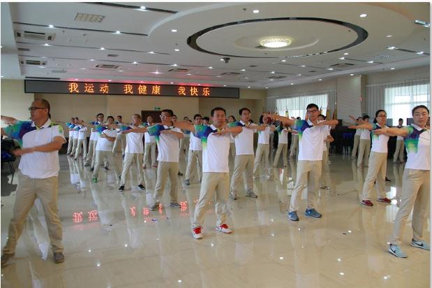 本次活动共分为两个环节:第九套广播体操展示及啦啦操表演。随着刘禹所长一声号令“全民健身日”展示活动正式启动,第九套广播体操那熟悉的音乐响起,地环所队员们昂首挺胸,伸展,扩胸、转体、踢腿……动作娴熟,张弛有度,充盈着刚健之美。在两轮广播体操展示结束后,所工会精心为大家聘请的西安体育学院的专业教练指导的啦啦操汇报演出,从基本动作、动作设计到表演曲目都是那么浑然天成,集体操、舞蹈、音乐、健身、娱乐于一体,更集团队协作、奋发向上、自信热情于一身,全面展现出了地环所人朴实的科研情愫下那张扬热烈、朝气蓬勃的精神力量。