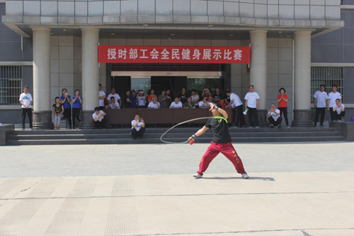 此次比赛除离退支部外,一共有五支队伍75人参加,评委由授时部领导、参加比赛的各党支部书记、工会委员构成。最终短波授时台党支部名列第一,获得了优胜奖;长波授时台党支部第二。赛前短波授时台党支部刘建喜同志表演麒麟健身鞭,赢得了观众们的阵阵掌声。