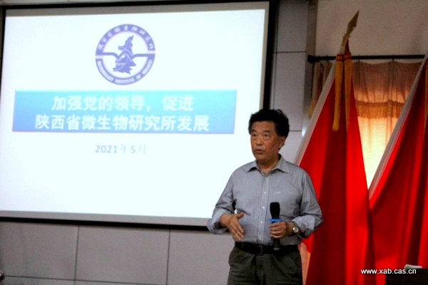 其后,由离退休支部党员李宏林同志为全体党员作《加强党的建设,促进陕西省微生物研究所的发展》的专题报告。李宏林从省微生物所的发展历程、党组织发展与精神文明建设、科研队伍和基础设施建设三方面,讲述了研究所从筹建、选址、建设及发展过程。通过所史的学习,让新一辈微生物所人感受到老一辈微生物所人在艰苦环境中甘于奉献的无私精神,号召党员同志珍惜现有良好的科研环境氛围,激发大家的爱所情怀和科研热情,全力为研究所下一步发展注入更强劲的创新动能和活力。