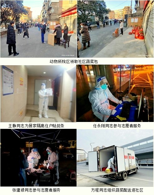 近日来,研究所先后有多名党员同志自愿到社区或研究所防疫值班一线,加入到社区防疫工作中,支持疫情防控工作,主动充当志愿者,服务社区核酸检测、服务居家隔离人员、组织物资运输及参与社区日常防疫工作。其中,王静同志,积极组织小区住户为医护人员捐赠物资,协助社区工作服务隔离人员、组建志愿者小队维护核酸检测及生活物资发放秩序;任永刚和张建禄同志,作为志愿者服从当地组织安排,为附近小区执行核酸检测采样任务;方程同志,在小区封控状态下,积极协调蔬菜配送,在紧张时期为小区居民争取到整车生活物资,解决住户生活所急。
