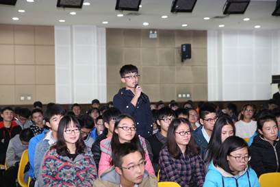 在报告互动环节,大学生们踊跃提问,就自己感兴趣的问题请教陈中仁研究员。有同学问我国登月工程与美国人有何不同?如何看待有人质疑美国人登月造假?还有同学问我国是如何提高CCD立体相机拍摄月球分辨率的。陈中仁老师都旁征博引地一一作答。他说,美国人登月是事实,也为人类提供了进一步探索月球的宝贵经验;如果我国探月工程的各种仪器元器件越来越精密,就会取得某些方面世界领先的成果!这就需要同学们立志报国,将来在科研上刻苦努力。