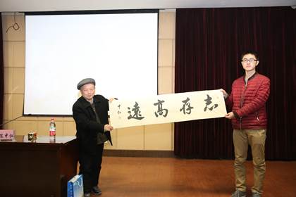 陈中仁研究员还特意为学校赠送了自己书写的书法作品“志存高远”,勉励同学们努力学习,报效祖国。