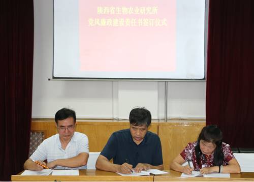 为贯彻落实中央和和分省院党组关于全面从严治党的部署要求,严格执行党风廉政建设责任制,根据《陕西省生物农业研究所党风廉政建设责任制实施细则》的相关规定,8月21日,陕西省生物农业研究所举行了新所首次党风廉政(廉洁从业)责任书签订仪式。