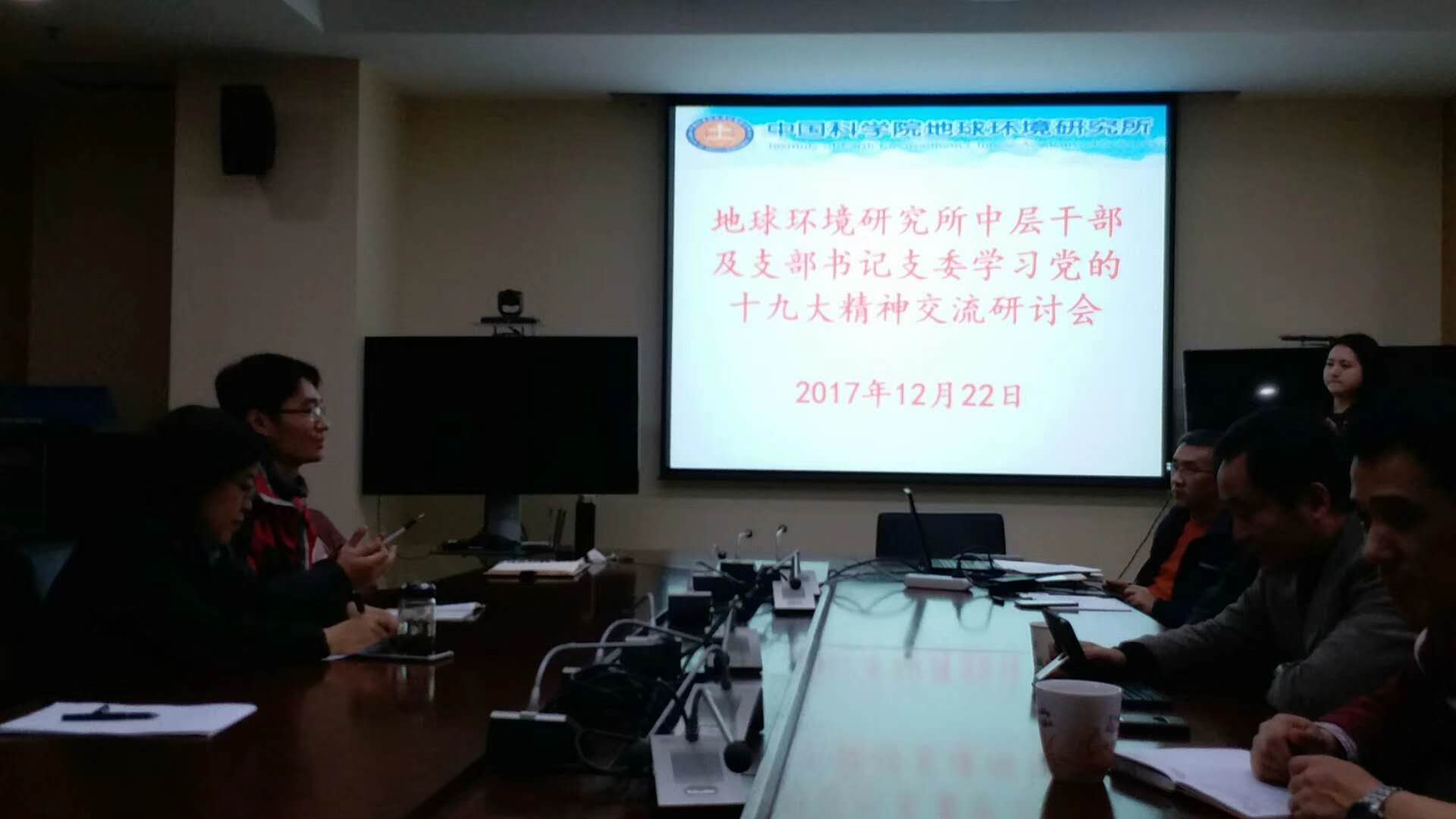 12月22日下午,中科院地球环境研究所召开中层干部及支部书记、支委学习党的十九大精神交流研讨会,在所中层干部、支部书记、支委20余人参加会议。会议由党委委员、纪委副书记李红兵主持。