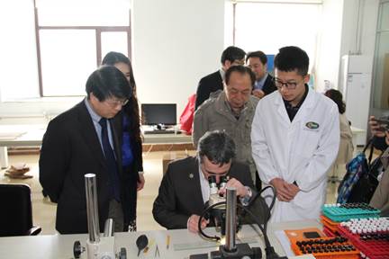 Cassis先生一行参观了气溶胶化学与物理、树木年轮、孢粉与热带气候、岩心样品库及岩心扫描和加速器质谱中心等实验室,并与地球环境研究所及西安交通大学的青年科研人员和学生进行了热烈交流和讨论。