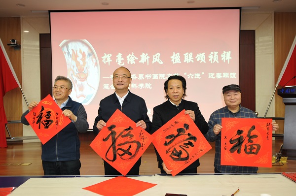 翰墨迎祥瑞,挥春倾福来。在2024年农历新春佳节即将到来之际,根据中共中央宣传部印发《关于组织开展2024年传统节日文化活动的通知》的相关要求与安排部署,1月31日,由中国科学院西安分院 陕西省科学院(以下简称“分省院”)机关工会主办的“‘挥毫绘新风,楹联颂祯祥’——陕西省政协各界书画院文艺‘六进’迎春联谊笔会走进科学院活动”在分省院机关举办。分省院党组书记、分省院系统工会主席詹瑞,全国政协委员、分省院副院长陈怡平出席活动。分省院机关工会邀请省政协各界书画院谭卫平、兀西军、侯浩涛、焦永康、成莎一行5位书画家来到分省院机关挥毫泼墨,书写春联,为分省院送福迎春。活动由分省院系统工会常务副主席、党群工作处处长杨文正主持。