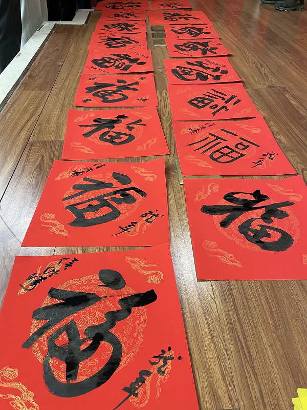 随后,迎春联谊笔会拉开帷幕,活动现场人头攒动,在洋溢着欢乐祥和的气氛中,省政协各界书画院的书法艺术家们和詹瑞、陈怡平等分省院领导共同手写“福”字和春联,真挚的新春祝福和美好的祈福祝愿凝情笔端,笔引龙蛇,纳福迎春。 “吉星永照平安宅,五福常临积善家”“东西南北风光好,春夏秋冬气象新”“玉兔已然书锦绣,万家福气续龙章”……一幅幅散发着清新墨香的春联、一个个饱含神韵的“福”字,表达对分省院机关干部职工的新春祝福和美好祝愿。