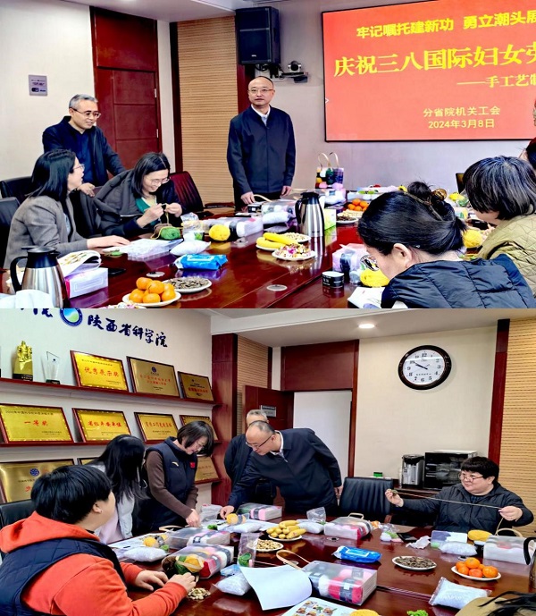 春和景明,万物昭苏。为庆祝第114个“三八”国际劳动妇女节,按照中国科学院妇工委“科苑女性活动月”和陕西省教科文卫体工会倡导的“三八”国际劳动妇女节系列活动精神, 3月6日至8日,中国科学院西安分院 陕西省科学院机关工会安排系列活动,组织女干部职工观看中国科学院“抢占科技制高点,巾帼逐梦立新功”先进事迹报告会暨表彰大会、开展“牢记嘱托建新功,勇立潮头展风采”手工艺制作活动。分省院党组书记、系统工会主席詹瑞,纪检组长、系统工会委员李晋芳,机关党委常务副书记、系统工会副主席杨文正出席或参加。
