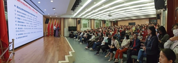 西安分院报告厅座无虚席,高随祥教授结合近年招生政策情况为200余名考生家长详细介绍了国科大培养特色、培养成效以及拔尖创新贯通培养计划等。强调国科大办学方针是培养国家科技领军人才,国科大对于本科生教育极为重视,尤其是在科研条件和师资力量方面具有极大优势,期待更多有志于科技报国的优秀高中毕业生积极报考国科大,在国科大奠定自己人生事业理想的基础。