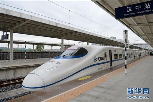 西成高铁试运行列车停靠在汉中站(10月13日摄)新华社记者 李一博 摄