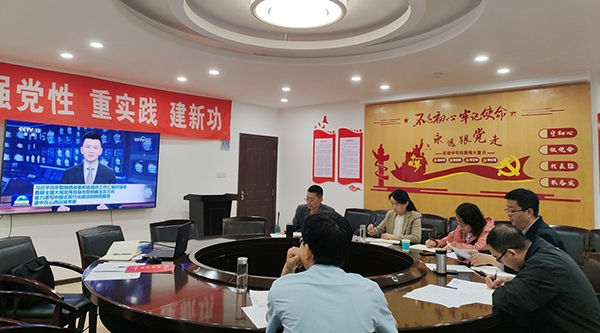 在学习会上,大家集体学习习近平来陕重要讲话“着眼全国大局发挥自身优势明确主攻方向 奋力谱写中国式现代化建设的陕西篇章”内容。