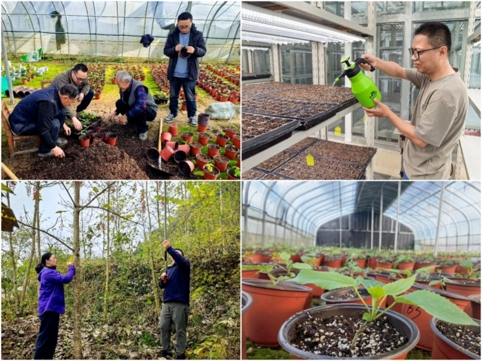 蓝图绘就,重在落实。驻村帮扶工作队作为战略执行的“排头兵”,迅速调整方向,以在全国优选的23个品类为基础,以育苗为起点,开启山桐子示范推广的新路径。从查阅资料、请教专家到自编育苗手册,从少量试种摸索经验到大规模育苗,帮扶队成员将苗期管理细化为每日必修课:既要精准把控浇水节奏,遵循山桐子“喜水怕涝”的特性,每日仔细观察土壤墒情与幼苗状态;又要根据苗株长势判断营养需求,适时开展施肥与病虫害防治。浸种、催芽、播种的每一个环节都严谨细致,每日的观察记录、水肥调控都一丝不苟,最终育成4752株根系发达、长势健壮的优质幼苗,全部安全越冬,迎来了移栽的关键阶段。