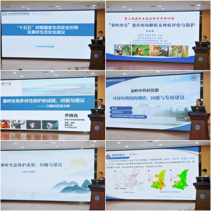 据悉,本次研讨会由省科学院牵头举办,得到全国政协、九三学社中央、省科技厅等相关部门支持。在学术交流环节,陈怡平研究员、中国环境规划院生态安全研究中心研究员马乐宽、西北农林科技大学二级教授昝林森等7位专家学者依次发言报告,围绕陕西省秦岭生态安全重点实验室工作、“十五五”时期国家生态安全形势、“秦岭四宝”保护、生物多样性、中药材资源利用、尾矿处理等议题分享最新研究成果与实践经验。