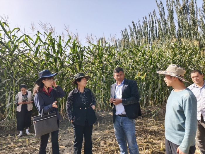 近日,10月初,陕西省生物农业研究所与墨玉县农业局、加汗巴格乡政府、新疆生态地理研究所以及中国科学院新疆分院驻村工作队等,共同在新疆和田墨玉县加汗巴格乡进行了玉米新品种实地考察和测产,结果显示新品种在生物量和品质上均取得了喜人表现。据了解,这已是陕西省生物农业研究所戴佳锟研究员在新疆和田地区实地开展玉米新品种田间表现调查工作以来迎来的第三年丰收。